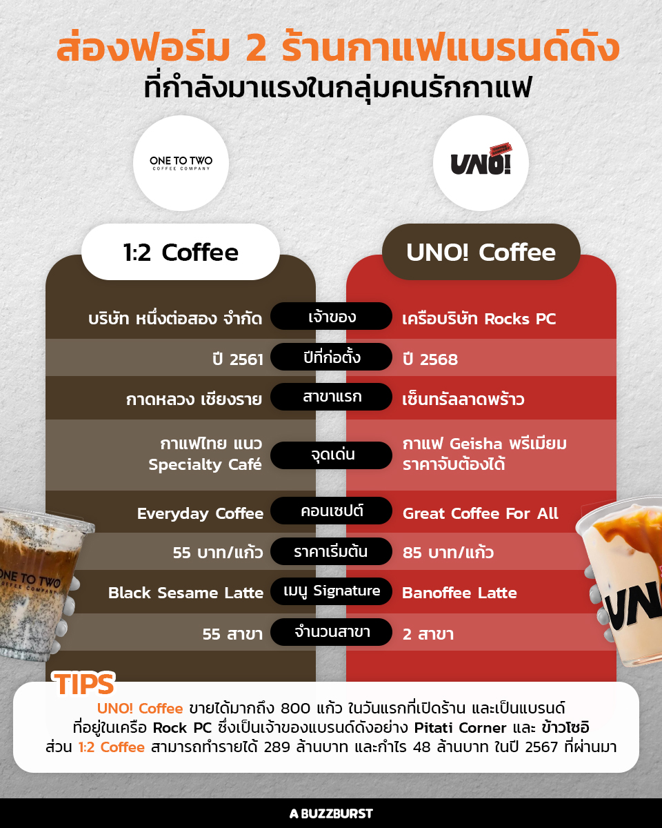 ที่กำลังมาแรงในกลุ่มคนรักกาแฟ ระหว่าง ร้าน 1:2 Coffee และร้าน UNO! Coffee